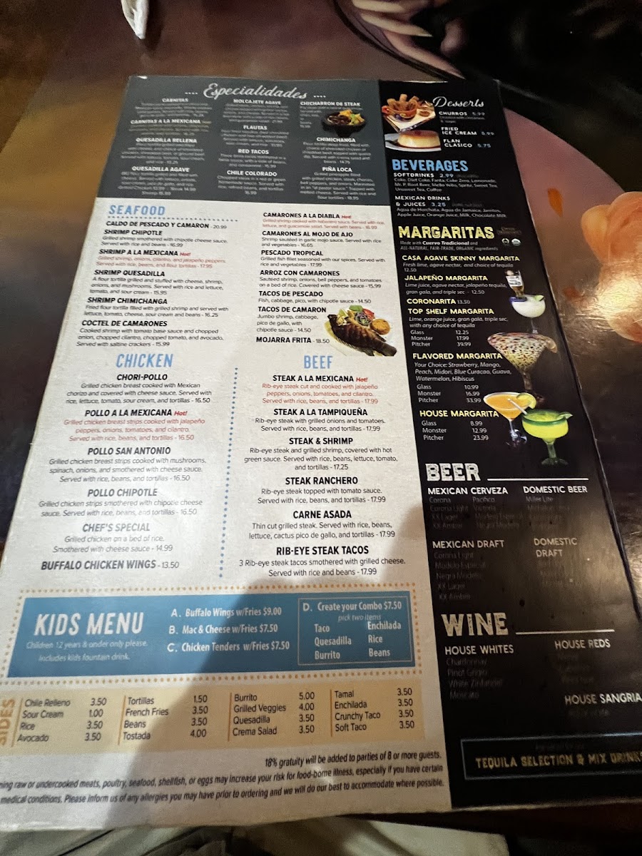 Casa Agave Mexican Grill Menu